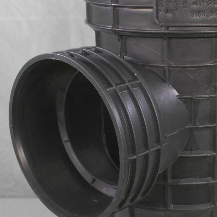 产品简介:塑料检查井井座部分采用一次性注塑成型,配变径接头、变角接头、橡胶密封圈等附件,实现变径变角连接。为塑料检查井研制了井盖、井眼及相关附件。道路荷载通过井盖和井位作用于检查井周围,避免道路荷载对检查井的破坏。