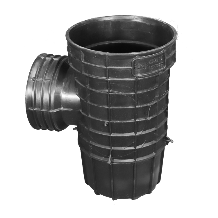 塑料检查井井座部分采用一次性注塑成型,配变径接头、变角接头、橡胶密封圈等附件,实现变径变角连接。为塑料检查井研制了井盖、井眼及相关附件。道路荷载通过井盖和井位作用于检查井周围,避免道路荷载对检查井的破坏。